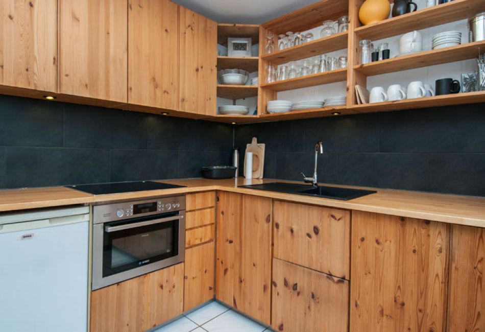 - Open Kitchen: with oven, ceramic cook top, dishwasher, refrigerator and space for table and chairs